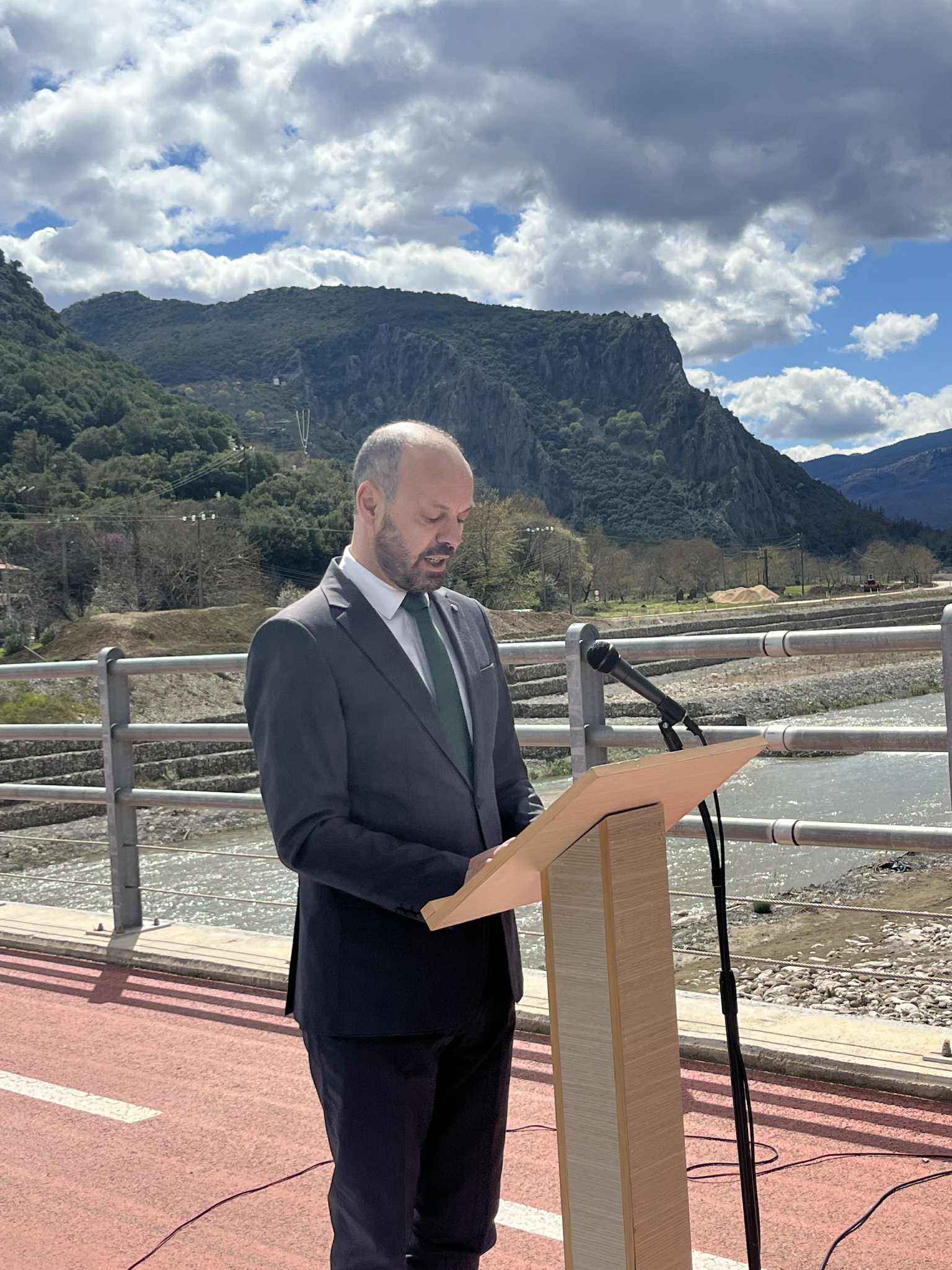 Ο Δήμαρχος Μουζακίου κ.Θεοφάνης Στάθης απηύθυνε χαιρετισμό, στον οποίο ανέφερε: «Με ιδιαίτερη συγκίνηση και σεβασμό πραγματοποιήσαμε μια ξεχωριστή και βαθιά συμβολική στιγμή για τον Δήμο Μουζακίου, την ονοματοδοσία της πεζογέφυρας σε “Δημάρχου Θεοδοσίου Ε. Καφφέ”. Με την πράξη αυτή δεν τιμούμε απλώς έναν πρώην Δήμαρχο, αλλά έναν άνθρωπο που υπηρέτησε τον τόπο με ήθος, συνέπεια, ακεραιότητα και ουσιαστική προσφορά.