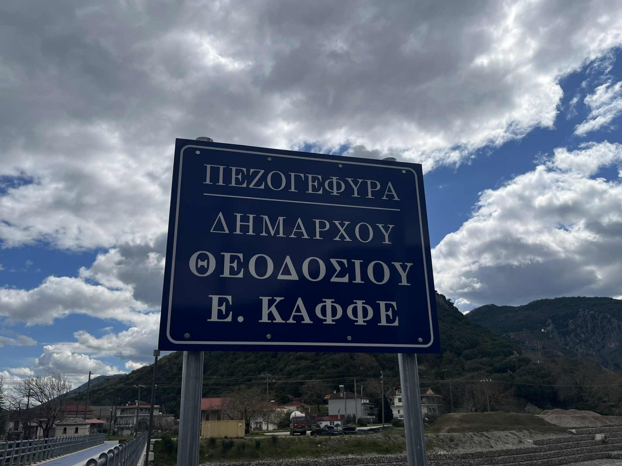 Με πλήθος κόσμου και σε κλίμα συγκίνησης πραγματοποιήθηκε την Κυριακή 29 Μαρτίου, η εκδήλωση για την ονοματοδοσία της Πεζογέφυρας “Θεοδοσίου Ε. Καφφέ” στο Μουζάκι, με συντονίστρια την κ.Φανή Δασκάλου, Πρόεδρο Δημοτικού Συμβουλίου.